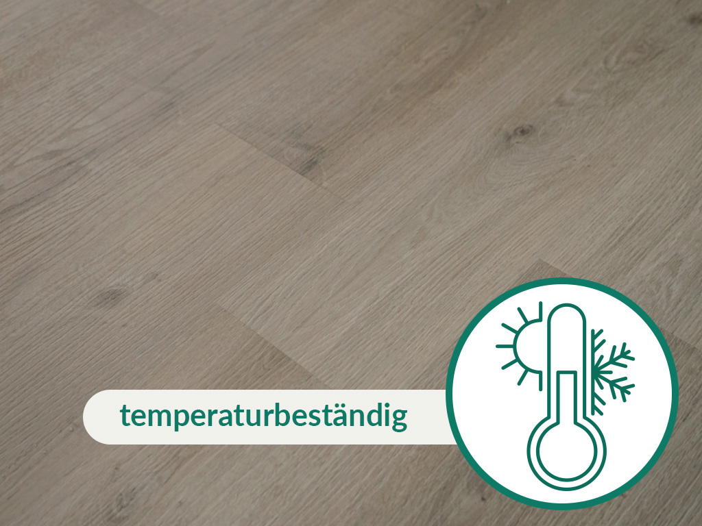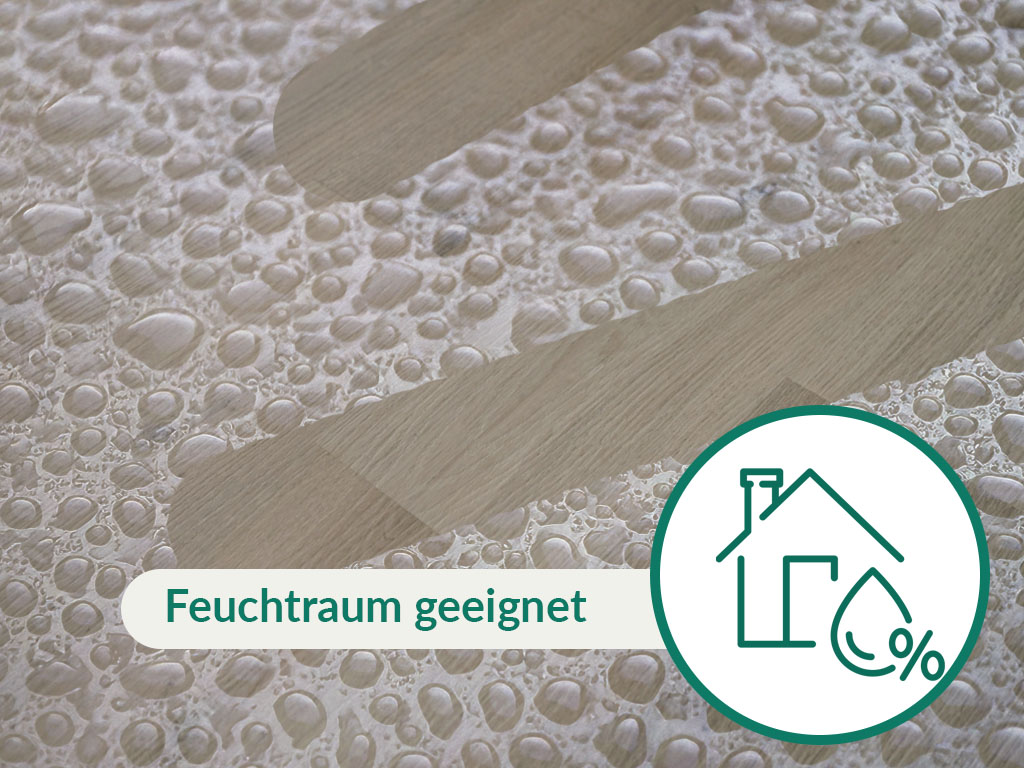 Une protection optimale contre l'humidité est une caractéristique particulière de ce produit de haute qualité. Il est donc parfaitement adapté à la pose dans des pièces humides. Grâce à sa bonne conductivité thermique, le sol en vinyle peut être posé sur un chauffage par le sol à eau chaude.