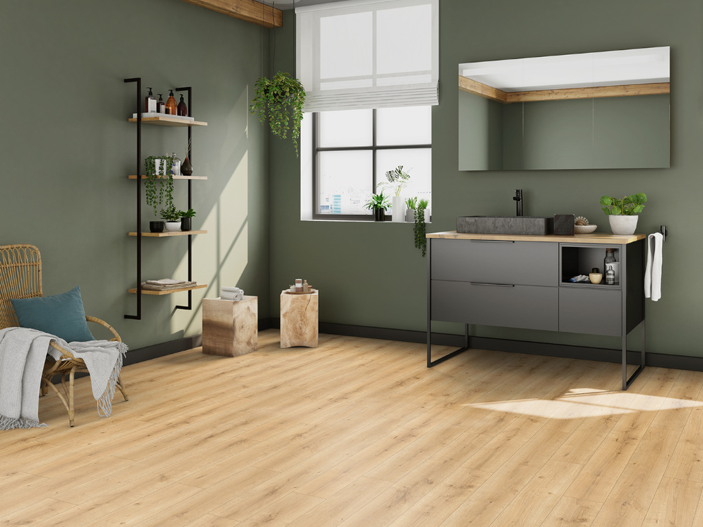 Une protection optimale contre l’humidité est l’un des atouts de ce produit de haute qualité. Il est donc parfait pour la pose dans les pièces humides. Le sol est peu sensible aux variations de température et présente une haute conductivité thermique, ce qui le rend compatible avec un chauffage au sol à eau chaude.