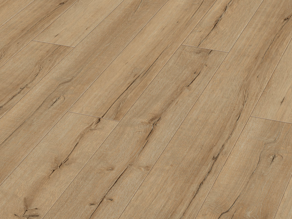 Épaisseur de 8 mm, système de clipsage, résistant à l’eau pendant 4 h, finition à pores apparents, 4 chanfreins