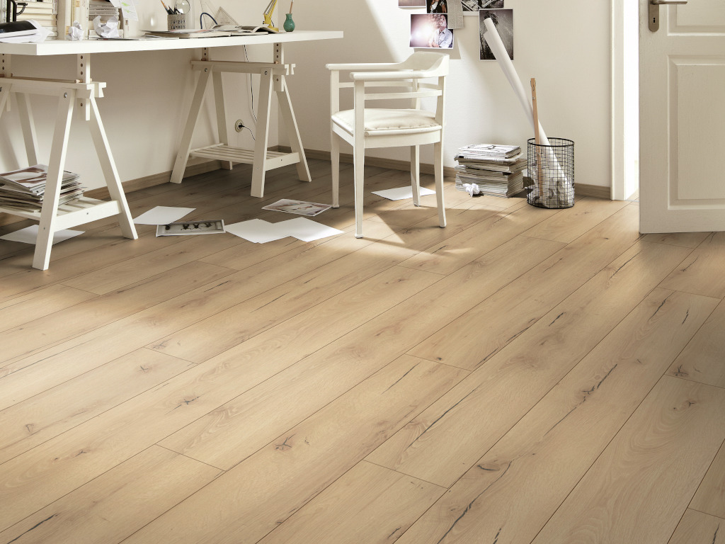Le sol stratifié est la combinaison idéale entre design et fonctionnalité. Son aspect contemporain et sa surface particulièrement facile d’entretien en font le revêtement parfait pour presque toutes les pièces.