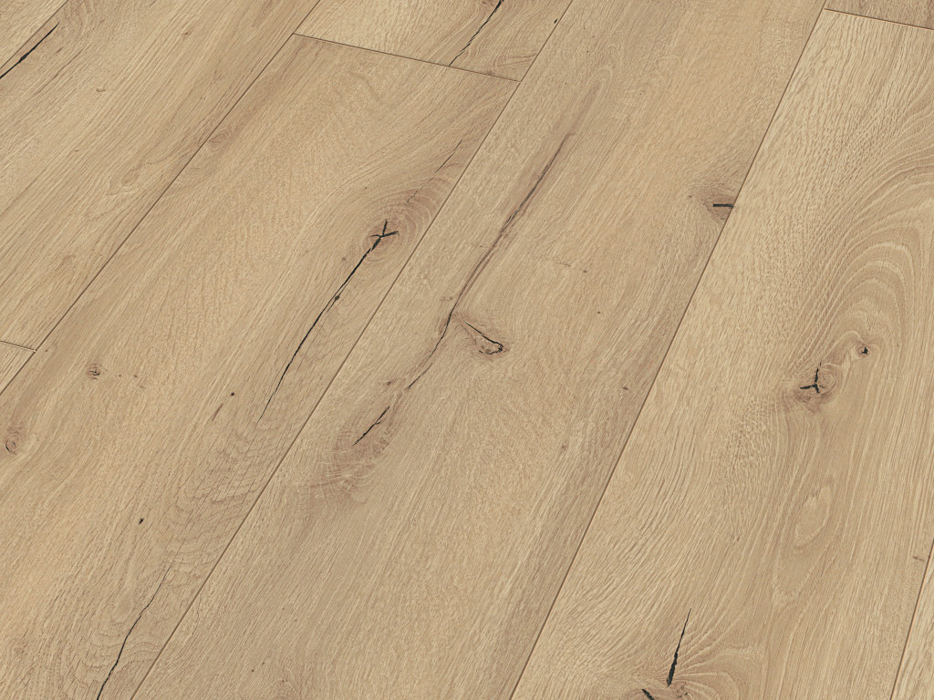 Sol stratifié Meister « LL150 » décor chêne fissuré clair 6258, lame large, ép. 8 mm, classe d’usage 23/32