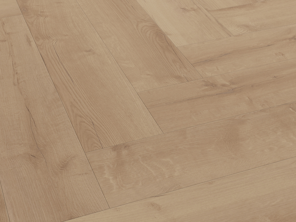 Le motif en bâton-rompu est réputé pour son allure raffinée et luxueuse : la structure des lames en pointe crée une ambiance royale. Les 4 chanfreins soulignent avec élégance le caractère des lames. La surface de cette lame est structurée, pour un rendu plus vivant et un relief perceptible au toucher.