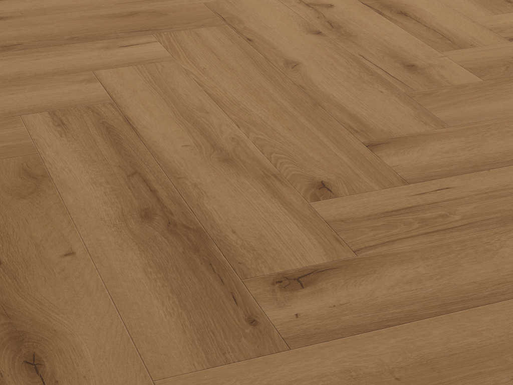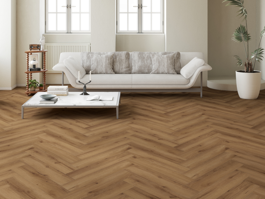 Sol vinyle Timefloor « Herringbone » décor chêne rustique, pose en chevrons, clipsable