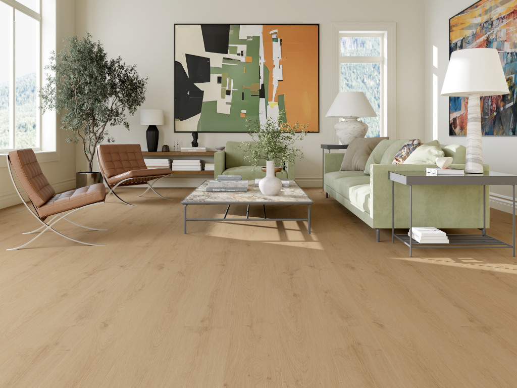 Le décor à l’élégante allure de chêne s’accorde parfaitement à la plupart des styles d’intérieur actuels. Les lames larges en aspect 1 lame offrent une présence élégante, un charme rustique et beaucoup de caractère. Ce revêtement sans joint apparent crée, grâce à ses lames enchaînées de manière continue, un ensemble homogène et harmonieux. La surface, à l’aspect authentique, se distingue par une fine structure de pores comparable à celle des plus beaux parquets en bois véritable.Détails techniques