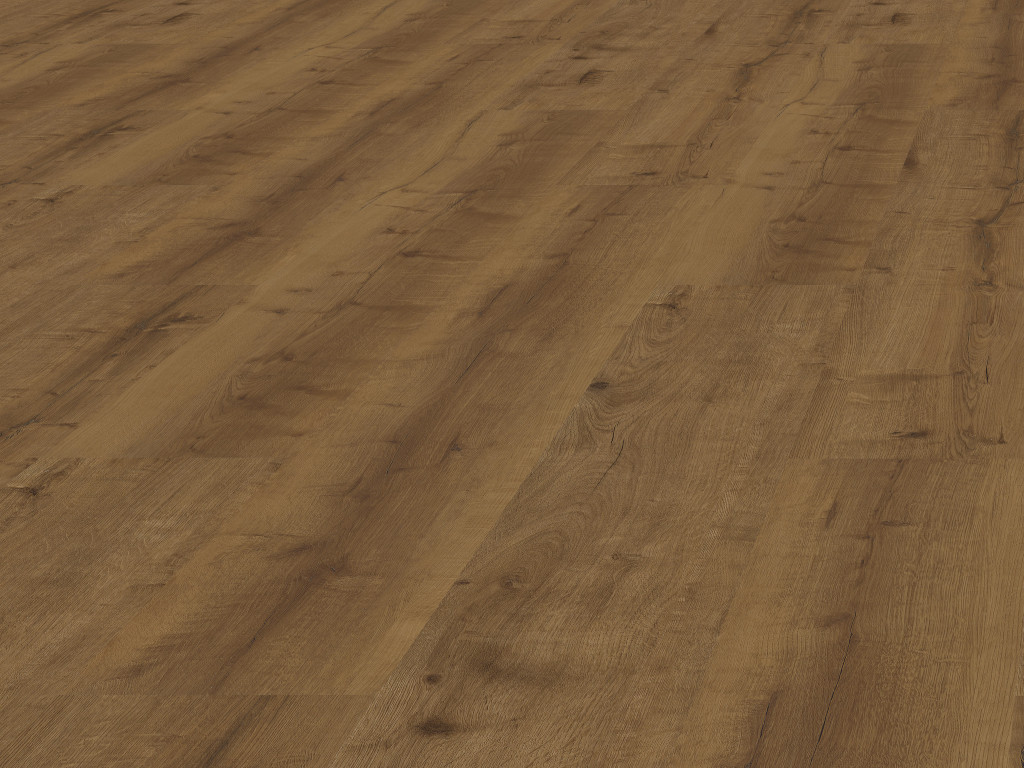 Sol vinyle clipsable haut de gamme décor chêne brun châtaigne, lame large