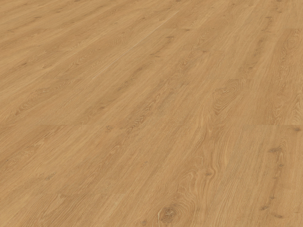 Les veines typiques du bois de chêne du décor dégagent une classe intemporelle et une chaleur confortable. Les planches larges à l'ancienne sont parfaites pour tous ceux qui souhaitent mettre en valeur le caractère authentique du bois de leur sol - pour une ambiance rustique. Avec ses veines naturelles, ce sol est le partenaire idéal pour presque toutes les tendances en matière d'habitat. Le chanfrein périphérique sur les quatre côtés structure l'image de pose et lui confère un motif régulier. La surface structurée s'oriente sur le veinage et confère en outre à la planche une composante haptique.