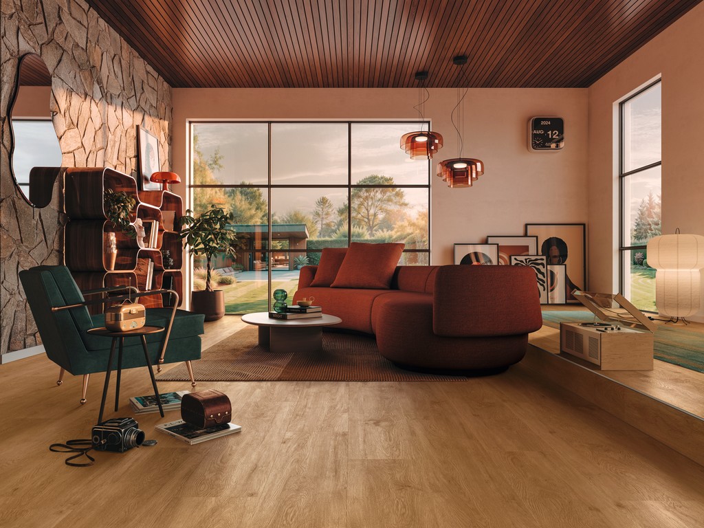 1220 x 230 x 5 mm, assemblage par clic, isolation intégrée, structuré, adapté aux pièces humides, micro-chanfrein sur 4 côtés