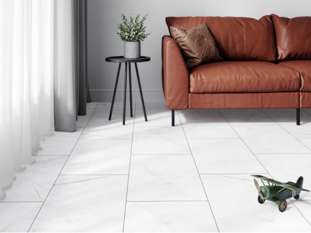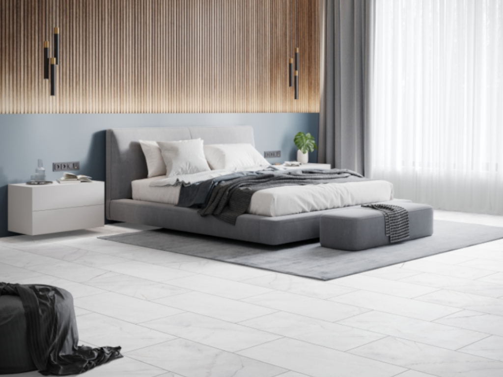 Le veinage discret présente peu d’irrégularités, pour un sol particulièrement sobre qui s’intègre à tous les styles d’intérieur.