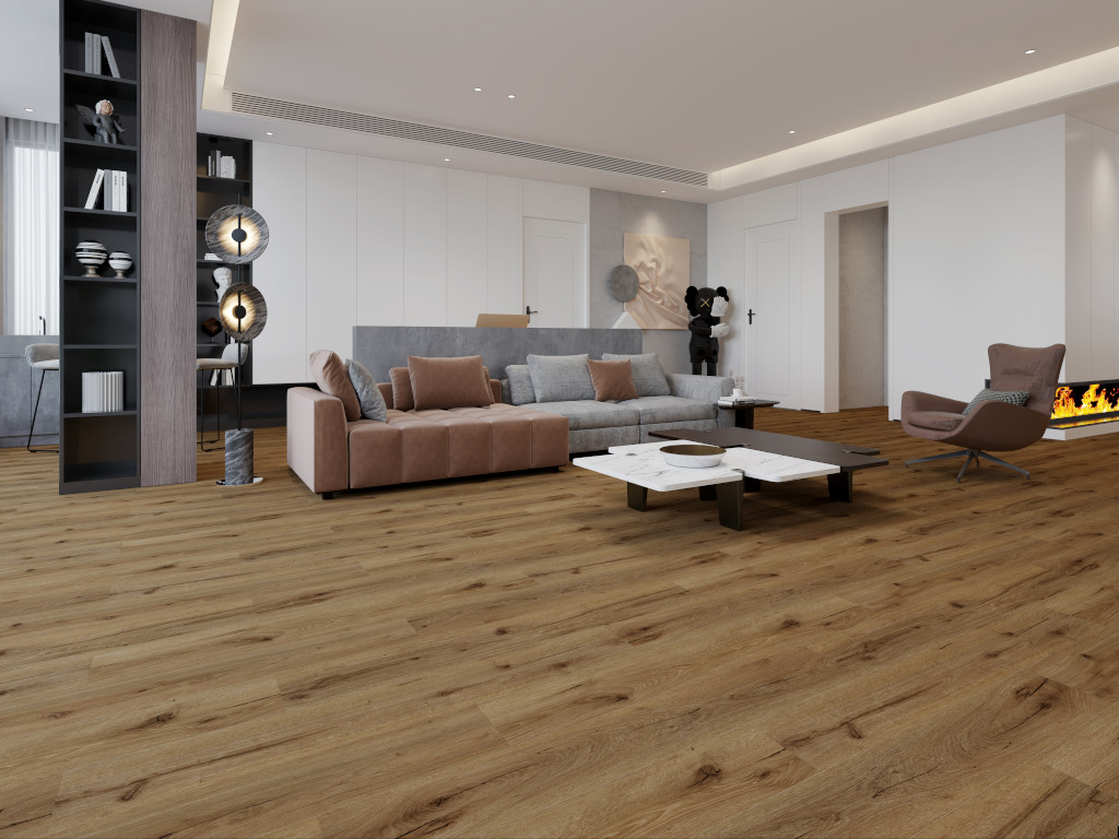 Ce sol est en vinyle rigide. Grâce à son noyau SPC stable qui en constitue le cœur, ce type de vinyle particulier présente également une rigidité et une robustesse accrues. Le vinyle rigide est donc particulièrement stable et peut être posé sans problème sur un revêtement de sol existant. Grâce au support SPC, le sol est résistant à la chaleur et à l'eau, ce qui le rend idéal pour les pièces humides, les vérandas et les pièces avec des baies vitrées.