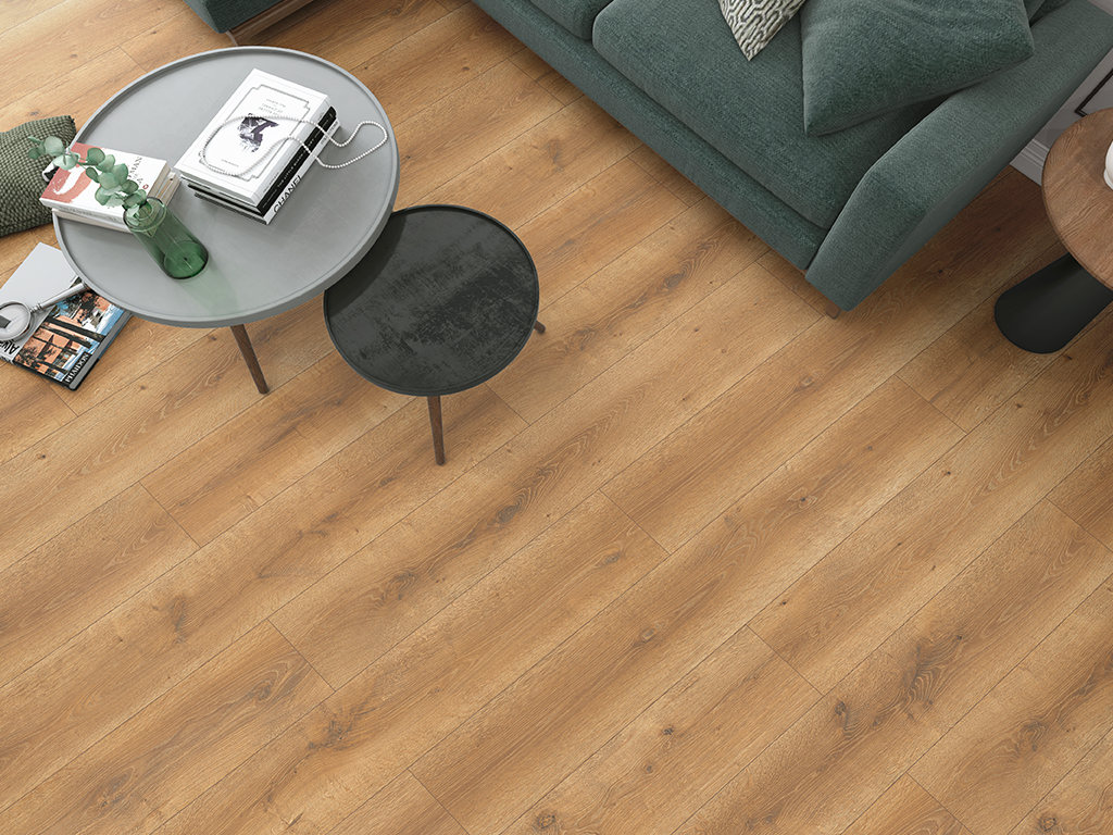 8 mm d’épaisseur, structuré, adapté aux pièces humides, chanfrein à 4 côtés