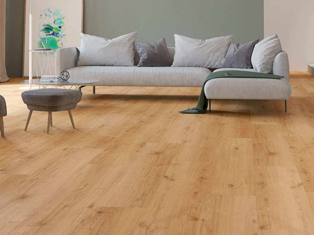 Le motif à aspect chêne authentique diffuse une chaleur et un confort palpables.
