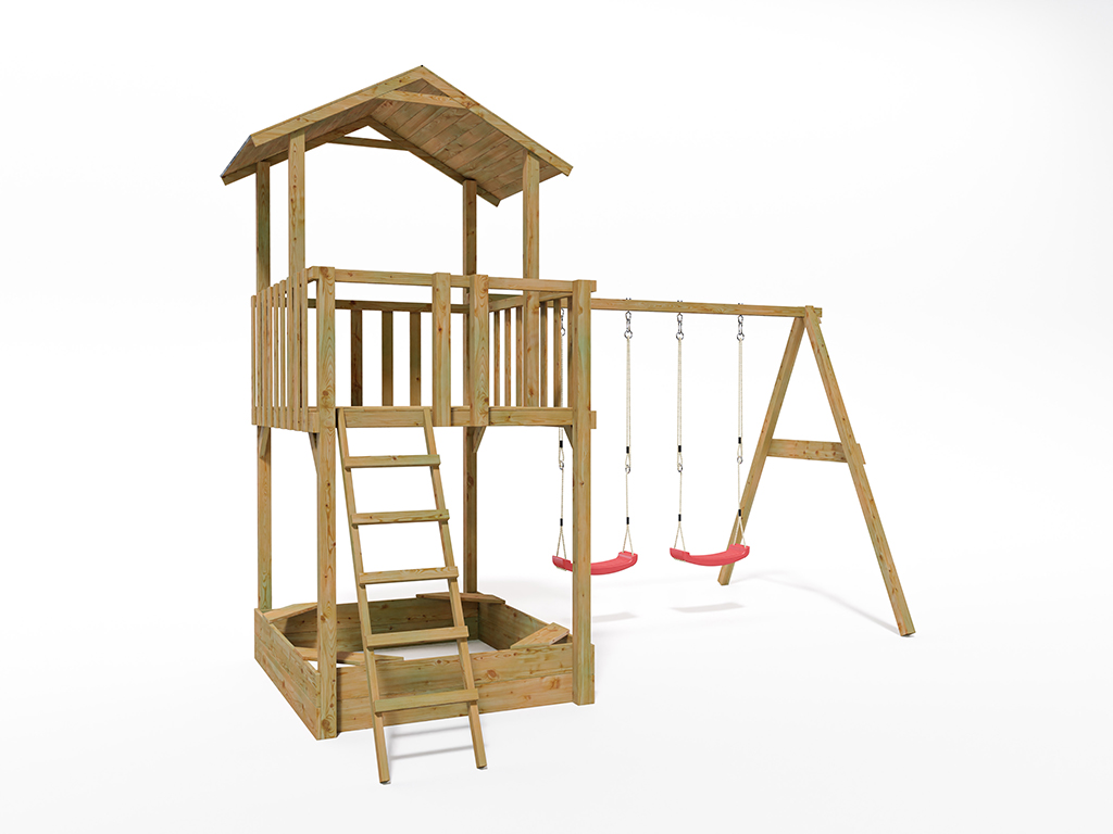 Aire de jeux en bois autoclave Tilly Classic avec 2 balançoires