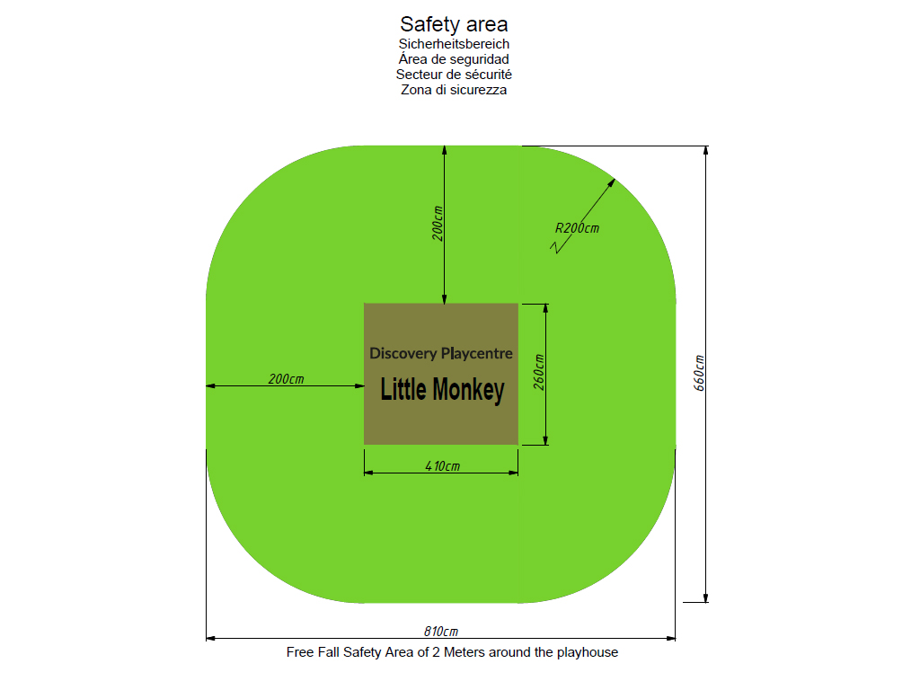 Dimensions extérieures: L x P : 410 x 220 cm (sans toboggan)