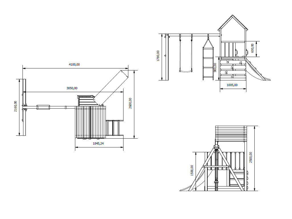 Epaisseur de poteau de l’aire de jeu (cm): 4 x 9 cm