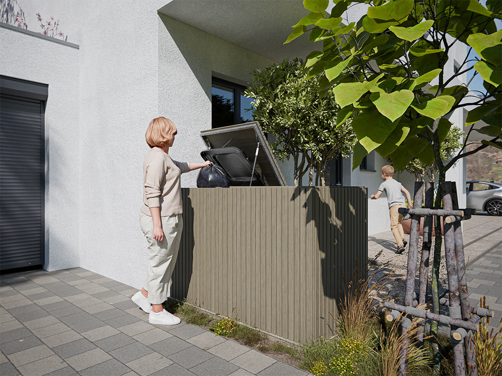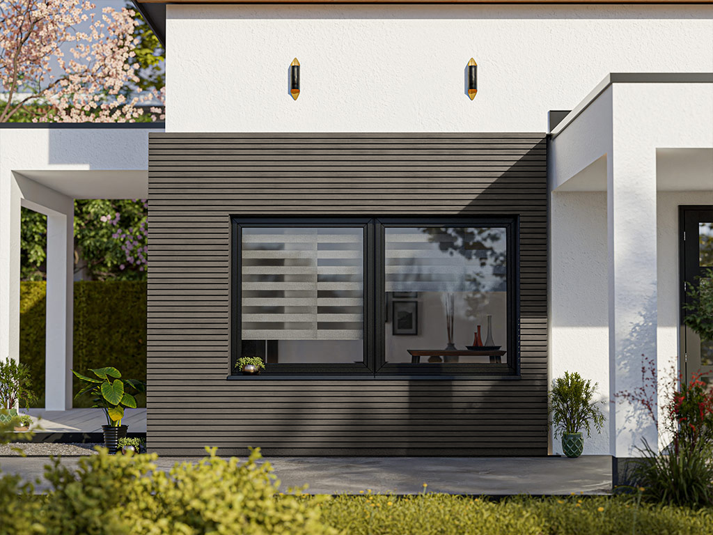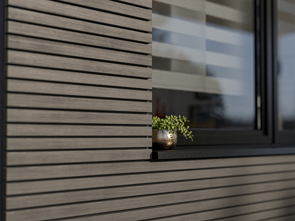 Contrairement aux façades en bois, les façades en WPC ne nécessitent aucun traitement ultérieur. Un nettoyage régulier et un éventuel rafraîchissement de la couleur suffisent. - Résistant aux intempéries et durable