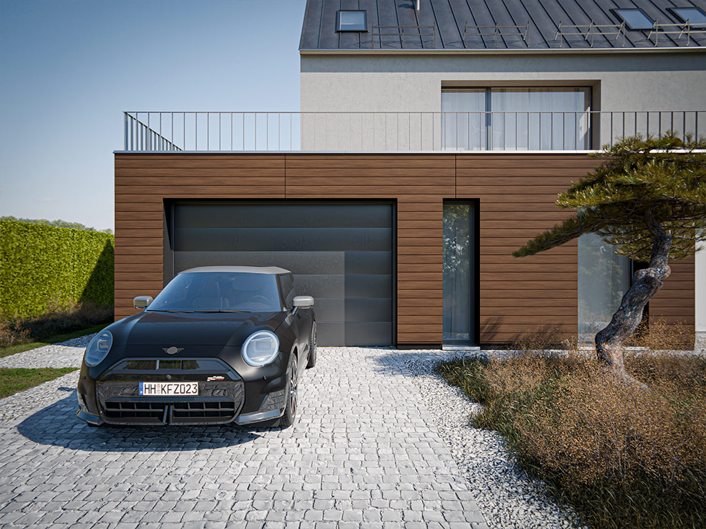 Contrairement aux façades en bois, les façades en WPC ne nécessitent aucun traitement ultérieur. Un nettoyage régulier et un éventuel rafraîchissement de la couleur suffisent. - Résistant aux intempéries et durable